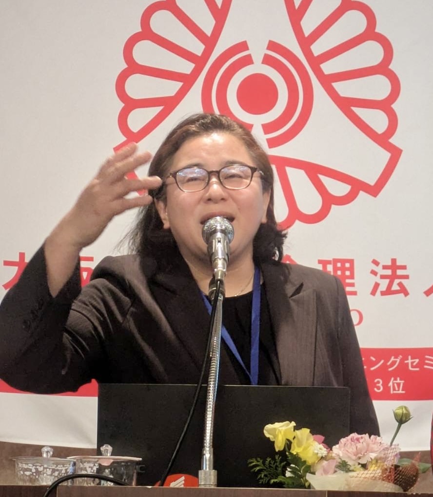 森山 百恵氏が壇上に立った瞬間から、場の空気がパッと明るくなる。